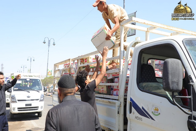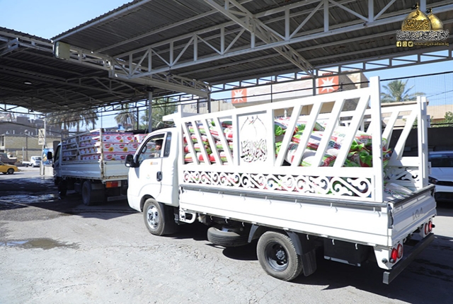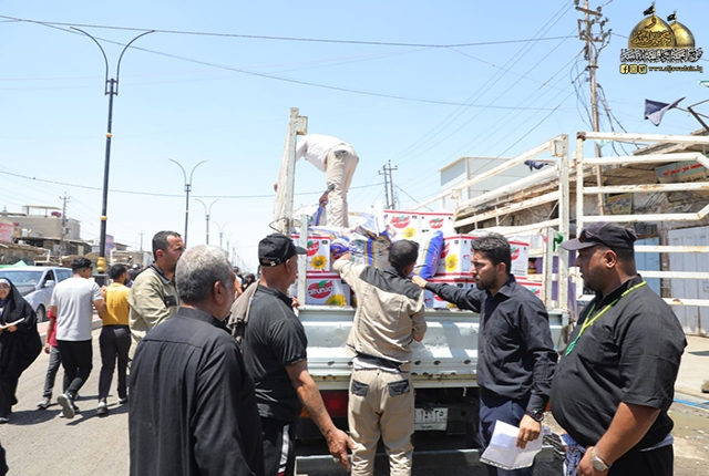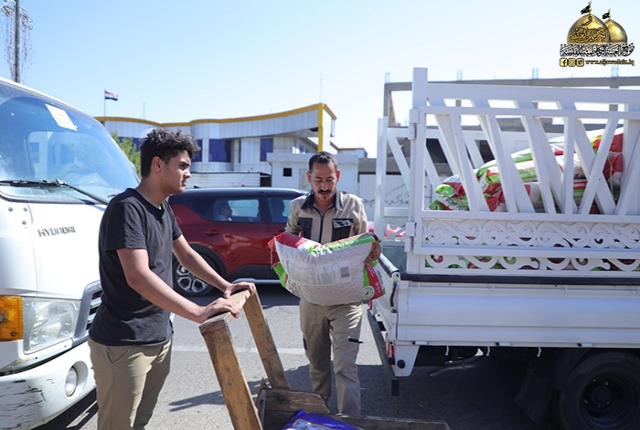 الأمانة العامة للعتبة الكاظمية المقدسة ترفد المواكب الخدمية بالمواد الغذائية الجافة