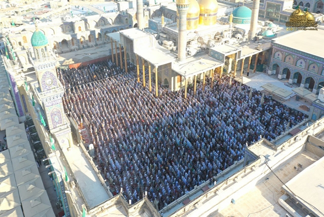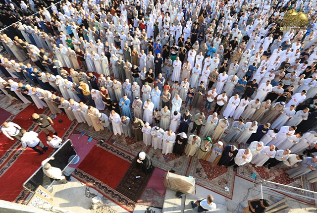 من جوار حرم الإمامين الكاظمين "عليهما السلام" جموع الموالين تحتشد لأداء صلاة عيد الأضحى المبارك