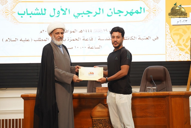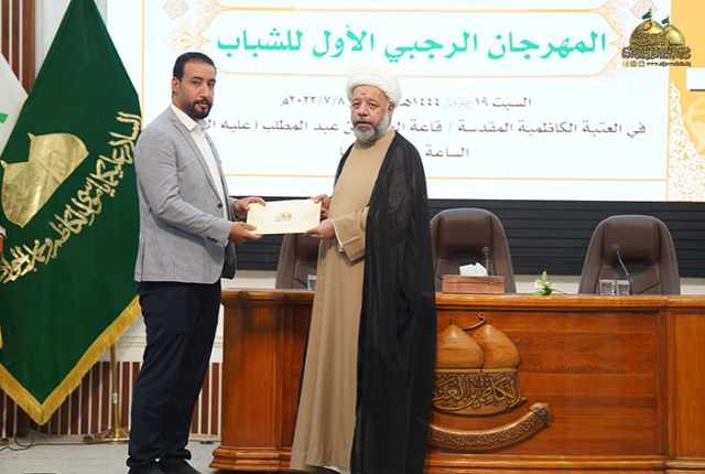 وأضاف: انتظروا الإعلان عن النسخة الثانية من المهرجان الرجبي الشبابي ونحن على يقين أن المشاركات ستكون بصورة أوسع وأكثر شمولية ليكون لكم سهم في معنى الحديث القائل: (رحم الله من أحيا أمرنا) فمشاركاتكم صاغتها المشاعر والأحاسيس وتلونت بفرشاة غمست بالولاء وخطتها أقلام استمدت أحبارها من قدسية الإمام الكاظم عليه السلام لتتشكل لوحة غنّاء تفصح عن مدى حبكم وولائكم للإمام المظلوم المسموم موسى بن جعفر الكاظم عليه السلام. مبارك للفائزين بل مبارك لكل المشاركين فكل قد أدلى بدلوه وحتما سيكون له ذخرا في يوم لا ينفع فيه مال ولا بنون إلا من أتى الله بقلب سليم إن شاء الله تعالى).