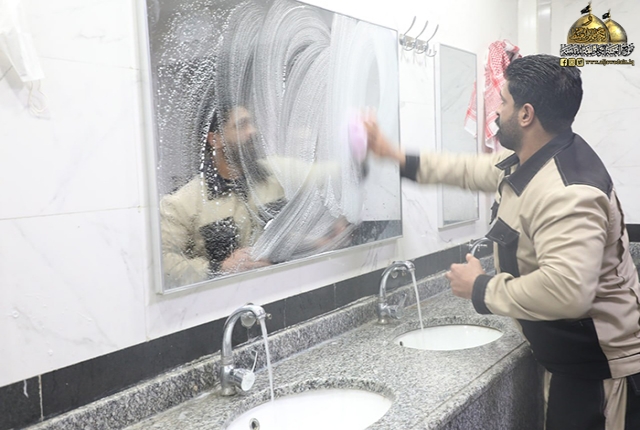 استنفرت شعبة النظافة جهود ملاكاتها الخدمية العاملة في جميع وحداتها منذ وقت مبكر بحملات تنظيف وإدامة واسعة استعداداً لموسم زيارة أربعينية الإمام الحسين "عليه السلام"، وبغية التعرّف على تلك النشاطات، تحدّث مدير شعبة النظافة الخادم مهند عبد الهادي محمد قائلاً: أولت شعبة النظافة عنايةً صحية كبيرة من خلال الالتزام بالتوصيات الصادرة من قبل الأمين العام للعتبة الكاظمية المقدسة خادم الإمامين الكاظمين الجوادين الدكتور حيدر حسن الشمّري باستنفار جميع ملاكاتها للبدء بخطتها حيث تم تهيئة فرق النظافة وتوزيعهم وفق عملية تنظيمية، والمباشرة بتنظيف صحون حرم الإمامين الكاظمين "عليهما السلام"، وغسل السجاد وتهيئة الفرش بجميع أنواعه، وإدامة شبكات الصرف الصحي والمنشآت الخدمية ودورات المياه الثابتة والمتنقلة داخل الصحن الشريف وخارجه، وتجهيزها بأنواع المنظّفات والمعقمات ورفع النفايات ونقلها إلى الأماكن المخصصة لها.