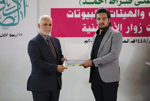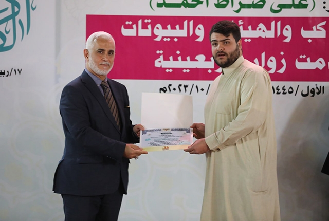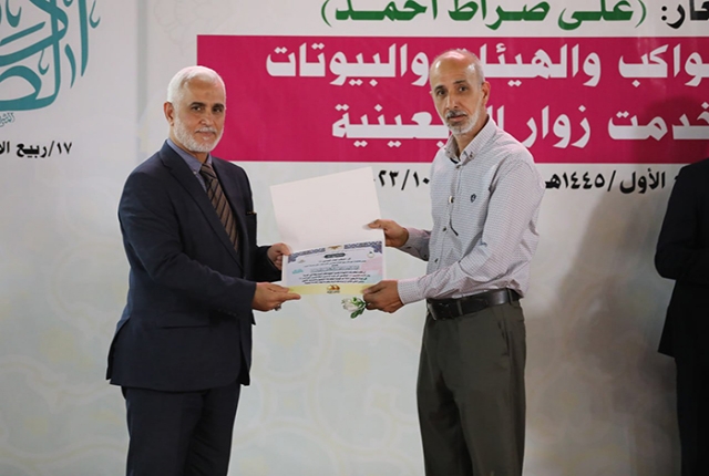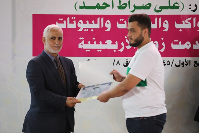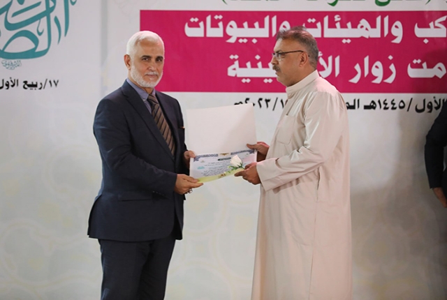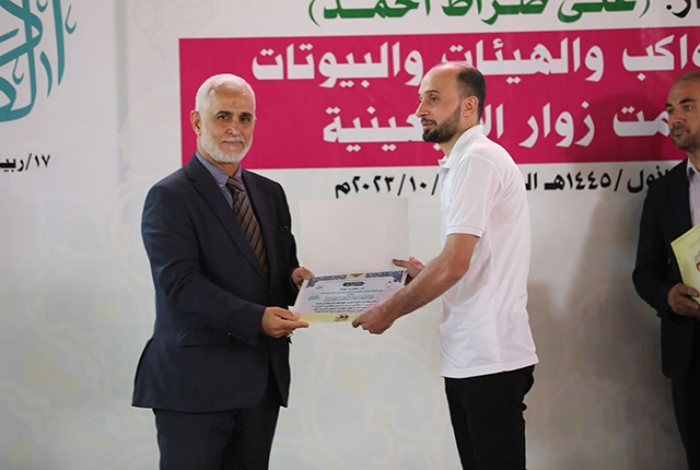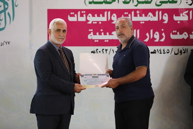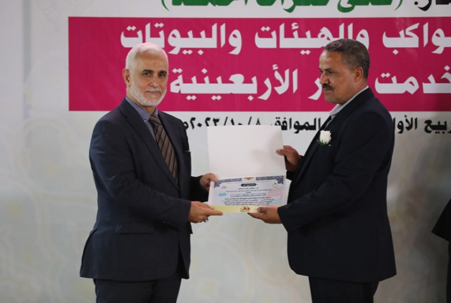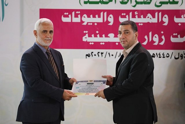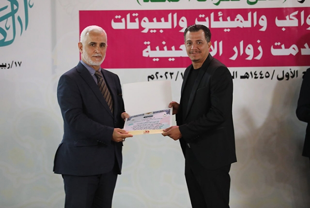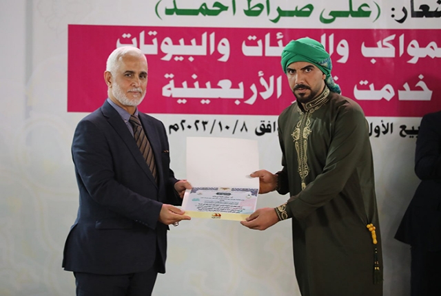 برعاية مباركة من قبل الأمين العام للعتبة الكاظمية المقدسة خادم الإمامين الكاظمين الجوادين الدكتور حيدر حسن الشمري، أقيم في رحاب الصحن الكاظمي الشريف حفل تكريم كوكبة من أصحاب المواكب والهيئات الحسينية والبيوتات والجوامع والحسينيات في مدينة الكاظمية المقدسة والمناطق القريبة منها، ضمن فعاليات مهرجان ربيع الولادة الخامس تحت شعار: (على صِراط أحمد)، احتفاءً بجهودهم المباركة ودورهم الفاعل وتعاونهم مع الأمانة العامة للعتبة الكاظمية المقدسة في تقديم الخدمة المتميزة للزائرين المتشّرفين بزيارة الإمامين الكاظمين الجوادين "عليهما السلام"، وإيواء جموع الوافدين من داخل العراق وخارجه خلال مليونية أربعينية الإمام الحسين "عليه السلام".