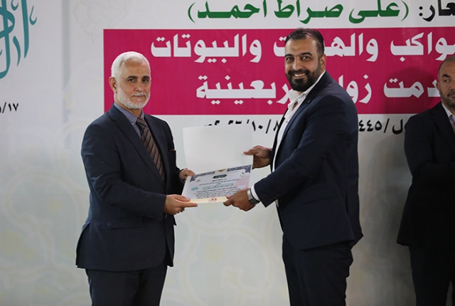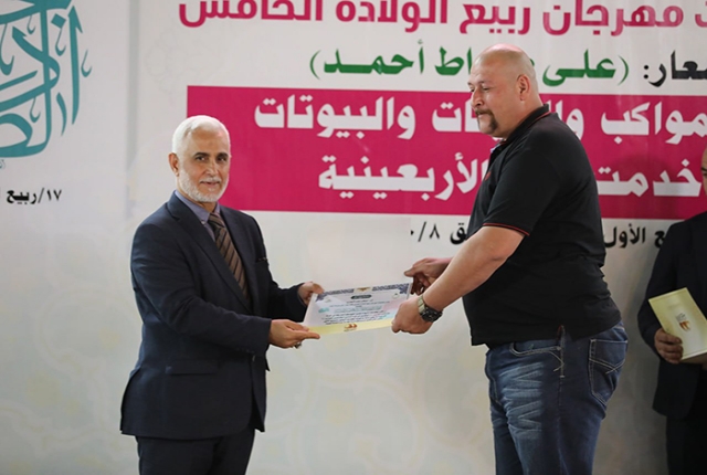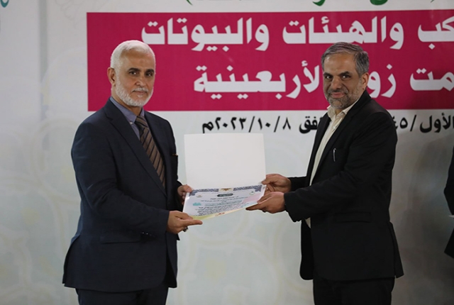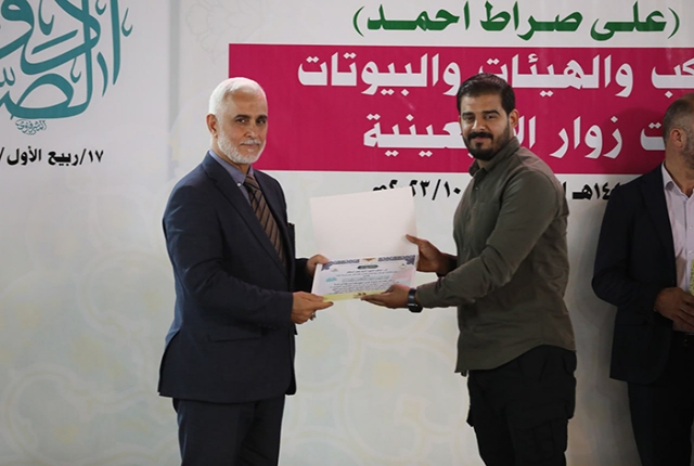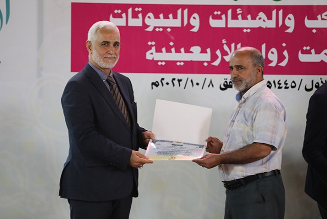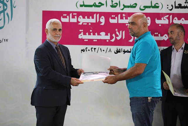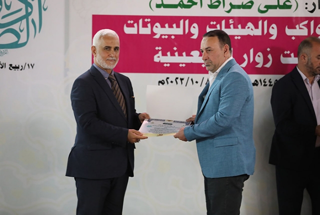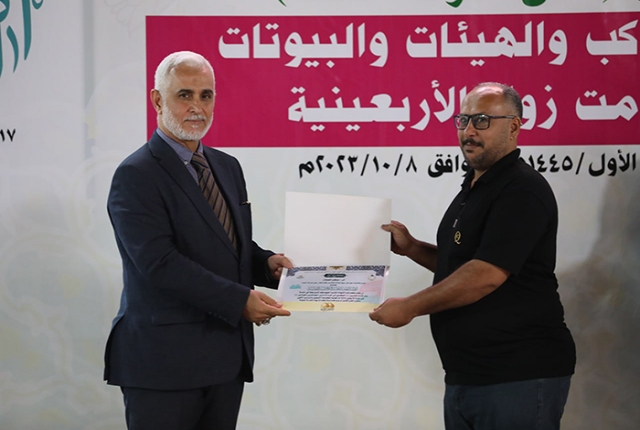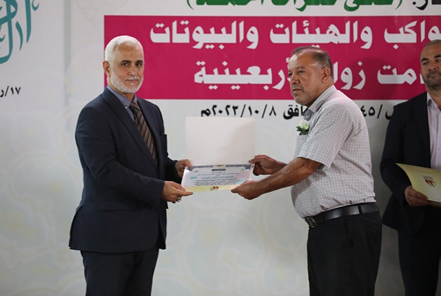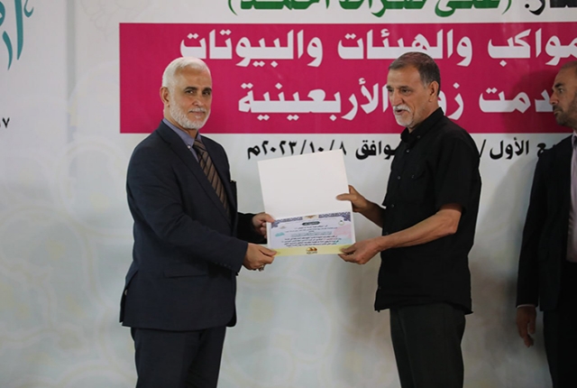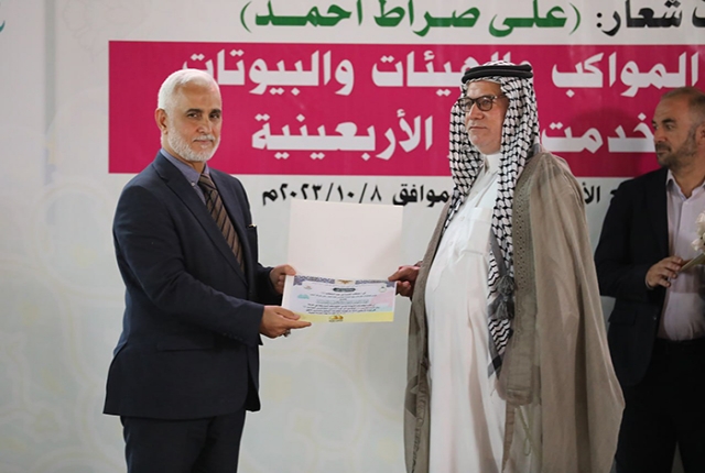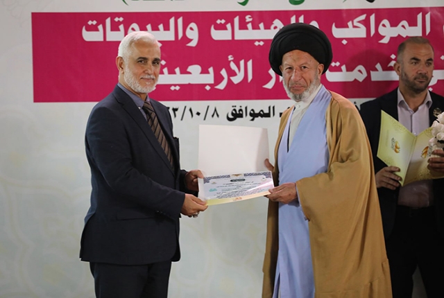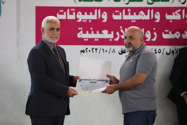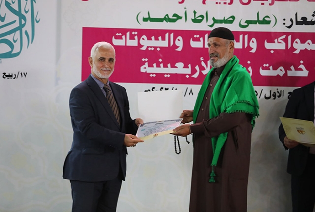 برعاية مباركة من قبل الأمين العام للعتبة الكاظمية المقدسة خادم الإمامين الكاظمين الجوادين الدكتور حيدر حسن الشمري، أقيم في رحاب الصحن الكاظمي الشريف حفل تكريم كوكبة من أصحاب المواكب والهيئات الحسينية والبيوتات والجوامع والحسينيات في مدينة الكاظمية المقدسة والمناطق القريبة منها، ضمن فعاليات مهرجان ربيع الولادة الخامس تحت شعار: (على صِراط أحمد)، احتفاءً بجهودهم المباركة ودورهم الفاعل وتعاونهم مع الأمانة العامة للعتبة الكاظمية المقدسة في تقديم الخدمة المتميزة للزائرين المتشّرفين بزيارة الإمامين الكاظمين الجوادين "عليهما السلام"، وإيواء جموع الوافدين من داخل العراق وخارجه خلال مليونية أربعينية الإمام الحسين "عليه السلام".