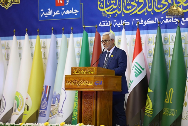 وأضاف: نحن أمّة اقرأ وورثة تراث اقرأ علينا أن نعمل بجد واجتهاد من أجل أن نكون ورثة حقيقيين لأثار اقرأ وما تتضمنه من آمال كبيرة في بناء الفرد والمجتمع وتربيتها على أسس راسخة وما هذه الساعات المباركة بين هذا الجمع المبارك إنما لأجل تجسيد تلك المبادئ العظيمة، وأن هذه المؤتمرات العلمية التي يشهدها العراق في الجامعات والعتبات المقدسة والمؤسسات إنما هي تعبير واضح وصادق على أهمية هذا المنهج في التلاقح المعرفي بين الباحثين من الجهات المختلفة من أجل خدمة العلم والمجتمع من جهة وفق المنهج البحث العلمي الرصين القائم على قواعد رصينة من جهة أخرى، وأن هذه المؤتمرات المتواصلة التي تقام في جميع العتبات المقدسة هي بارقة أمل كبير من القائمين عليها في خدمة المجتمع وفق معارف الثقل).