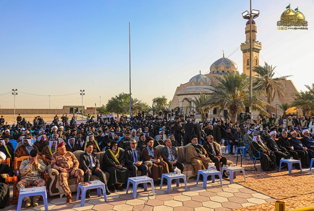 تزامناً مع إعلان موسم الحزن والحِداد وانطلاق الشعائر العزائية لمناسبة ذكرى شهادة حليف السجدة الطويلة ذي الساق المرضوض بحلق القيود باب الحوائج الإمام موسى بن جعفر الكاظم "عليه السلام"، ولأجل مشاركة الحشود والمواكب الإيمانية الغفيرة على طريق الولاء المتوافدة سيراً على الأقدام رجالاً ونساءً وشيوخاً وأطفالاً من أقصى جنوب العراق متوجهة نحو مرقدي الإمامين الكاظمين "عليهما السلام" مُعلنةً عن تجديد عهدها وصدق مشاعرها وإيمانها وولائها لقاضي الحاجات الإمام موسى الكاظم" عليه السلام"، لإحياء ذكرى شهادته الأليمة التي أثرت الضمير الإنساني بالدروس العبر والقيم الإنسانية السامية، أقامت الأمانة العامة للعتبة الكاظمية وبرعاية مباركة من أمينها العام خادم الإمامين الكاظمين الجوادين الدكتور حيدر حسن الشمّري المراسم العزائية السنوية الخاصة بهذه المناسبة التي استضافها مسجد خطوة الإمام علي بن أبي طالب "عليه السلام" في قضاء الزبير، بحضور كوكبة من الشخصيات الدينية والاجتماعية ووجهاء وشيوخ وأعيان محافظة البصرة الفيحاء.