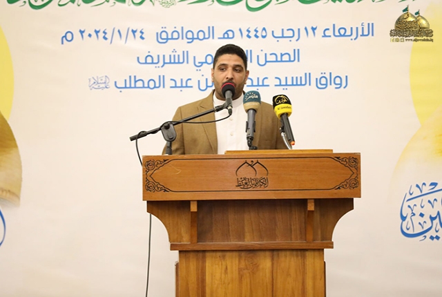 استهل الحفل بتلاوة من الذكر الحكيم شنّف بها أسماع الحاضرين خادم العتبة المقدسة القارئ الشيخ عامر الخفاجي، تلتها كلمة الأمانة العامة للعتبة الكاظمية المقدسة وألقاها أمينها العام قدم فيها التهاني والتبريكات إلى الأمة الإسلامية بهذه المناسبتين المباركتين، وبيّن قائلاً: (لم تعرف الدنيا رجلاً جمع الفضائل ومكارم الأخلاق - بعد الرسول الأعظم "صلى الله عليه وآله وسلم" كالإمام أمير المؤمنين "عليه السلام"، فقد سبق الأولين، وأعجز الآخرين، ففضائله أكثر من أن تحصى، ومناقبه أبعد من أن تتناهى، ولقد كانت أخلاقه قبساً من نور خلق النبي الأكرم " صلى الله عليه وآله وسلم" الذي تربى في حجره وعاش على مائدة مكارم أخلاقه، حتى شب واكتملت رجولته، وكان يتولاه "صلى الله عليه وآله وسلم" بالمواعظ والآداب العظيمة، فتنامت أخلاقه شموخاً، وسجاياه علواً ورفعةً، وظلت فضائله وأخلاقه ومكارمه حية متألقة في روحه حتى فارق الدنيا.