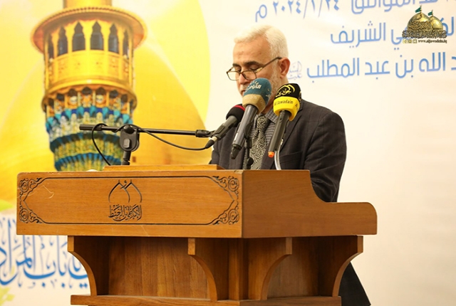 أما الأنموذج الحي الثاني والذي اجتمعنا لأجله فهو إمامنا محمد بن علي الجواد "عليه السلام" الذي فاق الناس بطهارة العنصر وزكاء الميلاد.. مجده عالي المراتب ومكانته الرفيعة تسمو على الكواكب ومنصبه يشرف على المناصب.. تتأرجح المكارم من أعطافه ويقطر المجد من أطرافه وتروى أخبار السماح عنه وعن أبنائه وأسلافه فطوبى لمن سعى في ولائه والويل لمن رغب في خلافه... فبه وبآبائه اتضحت سبل الهدى وبهم نسلم من الردى وبحبهم نرجو النجاة والفوز غدا.