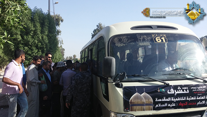 تتوافد جموع الزائرين الى مدينة الكاظمية المقدسة لإحياء ذكرى استشهاد الإمام محمد بن علي الجواد عليه السلام، تحدياً منها لكل أشكال العنف والقتل والتفجير الذي يسعى به أعداء الإنسانية والإسلام باستهدافهم مدينة الكاظمية المقدسة والمناطق الأخرى.. لذا وجهت الأمانة العامة للعتبة الكاظمية المقدسة ممثلة بأمينها العام بتأمين انسيابية دخول الزائرين وخروجهم، وإيماناً منها بدور قسم الآليات وأهميته البالغة في نقل الزائرين بآليات العتبة الكاظمية المقدسة من القطوعات الى داخل المدينة المقدسة بواقع (60) عجلة نقل (كوستر) ويتم زيادة العجلات حسب ازدياد أعداد الزائرين وتوفير عجلات اضافية إذا تم استحداث مداخل أخرى. وقد وفر قسم الآليات أربع محاور لنقل الزائرين: محور ساحة عدن .. من حسينية النواب الى ساحة الزهراء. محور عبد المحسن الكاظمي .. من تقاطع العطيفية الى ساحة الزهراء. محور جدة.. من تقاطع جدة الى ساحة العروبة، والآخر من تقاطع جدة الى ساحة الإمام محمد الجواد. وهناك العديد من الآليات الأخرى الخدمية التي دأبت على نقل المواد الغذائية بالعجلات المبردة والماء الصالح للشرب والثلج وكذلك عجلات الإسعاف لنقل الحالات المرضية، وأيضاً عجلات الحمل بأنواعها وعجلات نقل صغيرة.