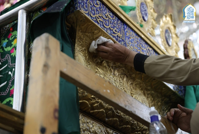 وتجدر الإشارة أن هذه الأعمال تنفذ بصورة دورية وموسمية من قبل فرق متخصصة، وتتم بعناية فائقة من خلال استخدام أنواع خاصة من المنظفات التي لا تؤثر على مكونات الشباك، وتُضفي طابعاً جمالياً عليه واظهار هذه الأجزاء من المرقد الطاهر بأبهى حُلّة.