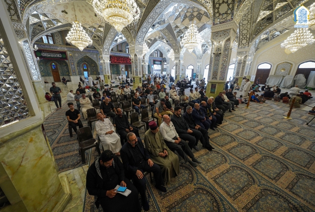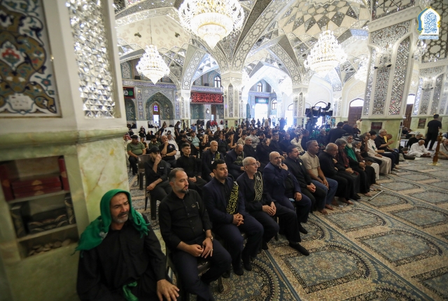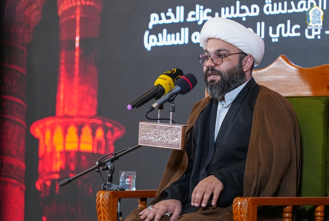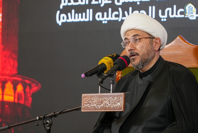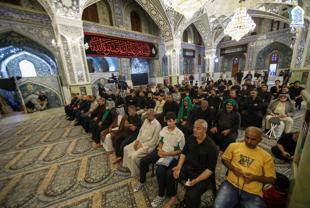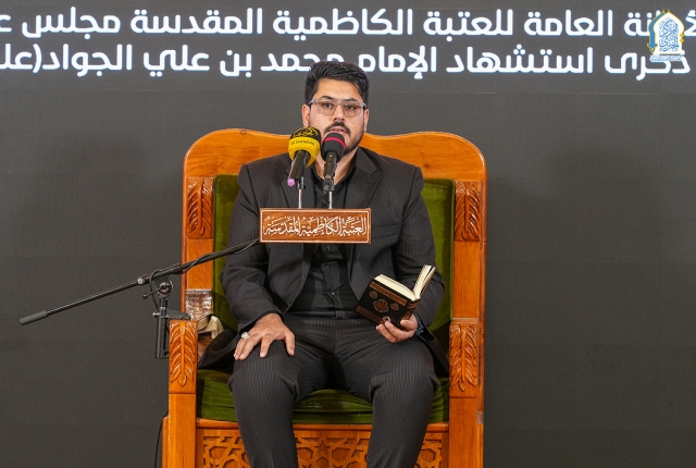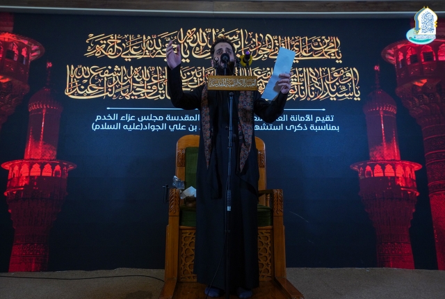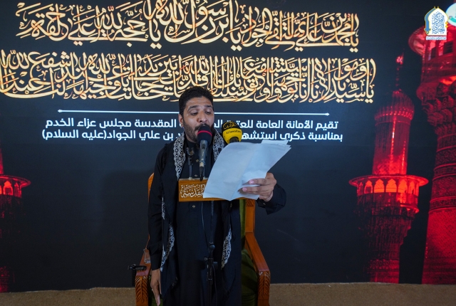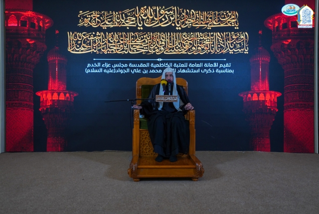 لتجديد عهد الولاء والوفاء لركن الإيمان وترجمان القرآن الإمام محمد بن علي الجواد "عليه السلام"، حرصَ خدّام العتبة الكاظمية المقدسة على رفع شعار الحزن والأسى وإحياء هذه المناسبة الأليمة، تجسيداً لقول إمامنا جعفر الصادق "عليه السلام" : (أحيوا أمرنا رحم الله من أحيا أمرنا)، إذ أقام موكب خدّام الإمامين الجوادين "عليهما السلام" مجالس العزاء والتأبين الحُسيني، في رواق سيدنا عبد الله بن عبد المطلب "عليه السلام"، حيث استضاف المجلس في محاضراته كل من : فضيلة الشيخ عماد الكاظمي، وفضيلة الشيخ منير الكاظمي، وفضيلة الشيخ عَدِي الكاظمي ليتحفوا الحضور بمحاضراتهم الدينية تتبّعوا خلال سلسلة بحوثهم المآثر والقيم الإنسانية والرسالية التي ضحّى من أجلها شباب الأئمة الإمام الجواد "عليه السلام" ومسيرته الكفيلة بإيصال صوت الحق والعدل الإلهي ومسؤوليته القيادية التي استطاع من خلالها أن يصون تراث آبائه الأطهار، والتطرق إلى الأحاديث الواردة عنه "عليه السلام" التي تفضي بالإنسان للوصول إلى مقاصد الإمام الجواد "عليه السلام" لنيل رضا الله تعالى والتي تعمل على تربية المؤمن والتوجه إلى الله عز وجل.