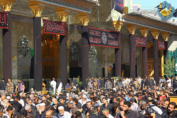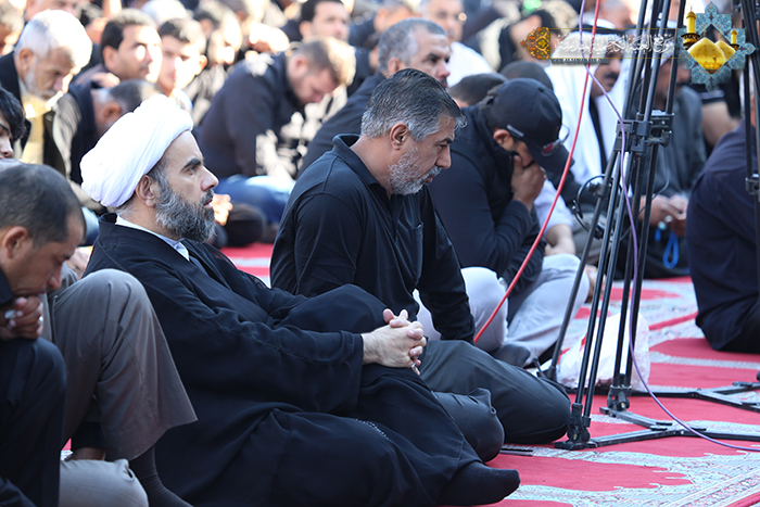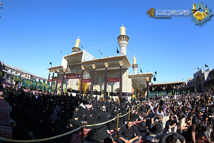 شهد الصحن الكاظمي الشريف أجواءً إيمانية ملأها الحزن والأسى استذكاراً لفاجعة الطف الأليمة التي سبي بها أهل بيت النبوة باستشهاد سيد شباب الجنة الإمام الحسين وأهل بيته الأطهار وأصحابه الأبرار"عليهم السلام" في يوم عاشوراء يوم الشهادة والتضحية والفداء الذي سُطرت فيها أروع الصور لإعلاء كلمة لا إله إلا الله محمد رسول الله بوجه الظلم والطغيان وإرساء القيم الإنسانية, وبهذه المصاب الجلل أقامت الأمانة العامة للعتبة الكاظمية المقدسة مراسم خاصة ليوم العاشر من محرم الحرام بحضور الأمين العام للعتبة الكاظمية المقدسة أ.د جمال الدباغ وأعضاء مجلس الإدارة وسماحة الشيخ حسين آل ياسين وكيل المرجعية الدينية العليا فضلاً عن حضور عدد من الشخصيات الدينية والاجتماعية وجمع غفير من زائري الإمامين الجوادين "عليهما السلام" للمشاركة في مراسم العزاء، استهلت بقراءة تلاوة أيٍ من الذكر الحكيم شنف بها قارئ العتبة المقدسة السيد عبد الكريم قاسم أسماع الحاضرين بعدها ارتقى المنبر الخطيب الحسيني سماحة السيد جعفر المشعشعي ليقرأ المقتل الحسيني، وسرد القصة الكاملة لواقعة الطف واستشهاد أبي عبد الله الحسين "عليه السلام"، حينها ضج الحاضرون بالنحيب والبكاء حزناً وتأسياً وولاءً لأئمة أهل البيت "عليهم السلام ", بعدها توجه الحاضرون بالدعاء إلى المجاهدين المرابطين في الثغور وساحات القتال المدافعين عن بلدنا ومقدساتنا بأن يثبت أقدامهم ويسدد خطاهم ويكللها بالنصر المؤزر . وأعقب هذه المراسم بعد صلاتي الظهرين قراءة زيارة الإمام الحسين بصوت القارئ عامر الخفاجي .