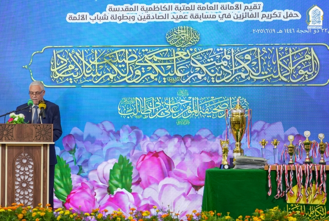 إن الأمانة العامة للعتبة الكاظمية المقدسة تنظر إلى فوزكم على أنه بداية طريق لا نهايته، ومسؤولية لا وسامًا فقط.. وإننا نؤكد لكم أن العتبة الكاظمية المقدسة ستبقى ـ بعون الله ـ منارةً تحتضن الإبداع، وتُكرّم أهله، وتؤمن بأن بناء الإنسان هو الخطوة الأولى في بناء الأوطان.. لقد كنتم جديرين بالتكريم، لا لأنكم فزتم بجائزة فحسب، بل لأنكم أثبتم أن الإبداع رسالة، وأن التميز ليس ترفاً بل مسؤولية، وأن النهوض بالمجتمع لا يتم إلا على أكتاف من يحملون الوعي والهمة، والقدرة على تحويل الحلم إلى منجز.. فمبارك لكم هذا التكريم، سائلين الله أن يوفقكم لما فيه الخير، وأن يفتح أمامكم أبواب النجاح والبركة، وأن يجعلكم من الذين يُقال لهم: (إِنَّ هَٰذَا كَانَ لَكُمْ جَزَاءً وَكَانَ سَعْيُكُم مَّشْكُورًا)..