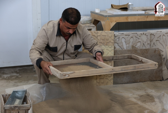 وبيّن أن عملية تصنيع الترب تمر بثلاث مراحل أساسية تبدأ أولاً بطحن التراب المخصص، تليها مرحلة التصفية والتنقية من الشوائب، ثم إدخاله إلى ماكينة التصنيع الخاصة، حيث تُشكل الترب وتُكبس وتُهيأ للتوزيع من خلال متارب الصلاة المنتشرة في أرجاء الصحن الشريف.