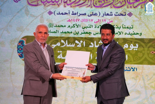لمناسبة ذكرى ولادة خير المرسلين الصادق الأمين محمد "صلى الله عليه وآله" والتي تتزامن مع ولادة حفيده سليل الإمامة سادس أئمة الهدى جعفر بن محمد الصادق "عليه السلام"، وتواصلاً لفعاليات مهرجان ربيع الولادة السابع الذي يُقام تحت شعار: (على صِراط أحمد)، شهدت رحاب الصحن الكاظمي الشريف، حفل يوم الإنشاد الإسلامي بنسخته الخامسة الذي يمثل رسالة محبة وسلام ونشر فكر النبي الأكرم وآله الأطهار "صلوات الله عليهم أجمعين" من خلال توظيف فن الانشاد حينما تخاطب كلماته الأرواح والأفئدة وتحلق في عالم الإبداع والجمال، بحضور كوكبة من الأصوات الشابة الواعدة في ميدان الإنشاد الحُسيني، وجمع من الزائرين الكرام.