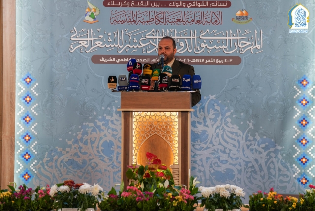 فأهلاً بالشعراء الذين جاءونا من مختلف البلدان، يحملون مشاعرَ صادقةً، وأقلاماً مخلصةً، ليُسمعوا الدنيا أنّ الولاء لمحمدٍ وآله، هو نسيمُ حياة، ومصدرُ عزّة، ورايةُ كرامة).