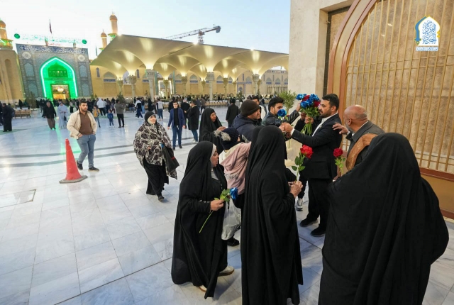 أفراح تتوشح بنور الإمام الجواد العتبة الكاظمية المقدسة توزّع الزهور ابتهاجاً بذكرى ولادته المباركة