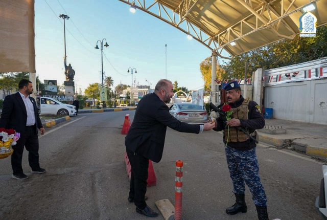 ابتهاجاً بذكرى ولادة الإمام محمد بن علي الجواد "عليه السلام"، وضمن فعاليات برنامج "نسائم الجواد الثقافي"، قام خَدَمةُ العتبة الكاظمية المقدسة بتوزيع الزهور على المواطنين والقوات الأمنية المتواجدة في مدينة الكاظمية المقدسة، تعبيراً عن مشاعر الفرح والولاء بهذه المناسبة العطرة.