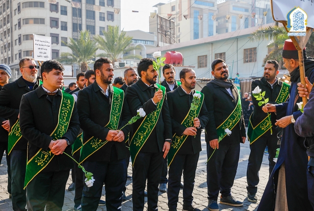 وشهدت المسيرة مشاركة خدّام العتبة المقدسة وجمع من الزائرين الكرام، صدحت خلالها الحناجر بالهتافات والردّات الولائية التي عبّرت عن عمق الارتباط والولاء للإمامين الكاظمين الجوادين "عليهما السلام"، مجددةً العهد على المضيّ بنهجهم المبارك، واستلهام قيمهم في خدمة الدين والمجتمع.