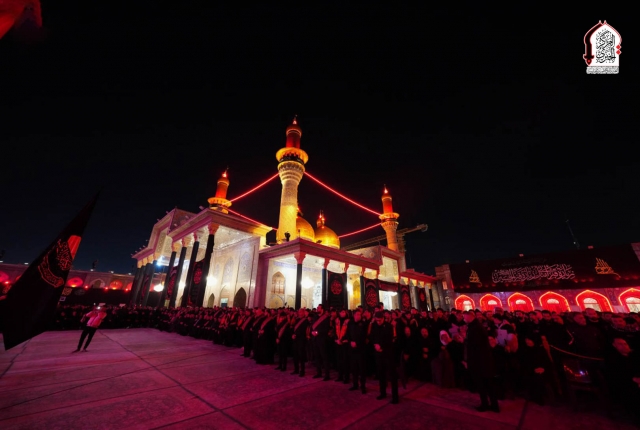 خّدام العتبة الكاظمية المقدسة يرفعون رايتَيْ الحُزن والصبر وسط ذرف الدموع وتعالي الهتافات (لبيك يا موسى الكاظم)