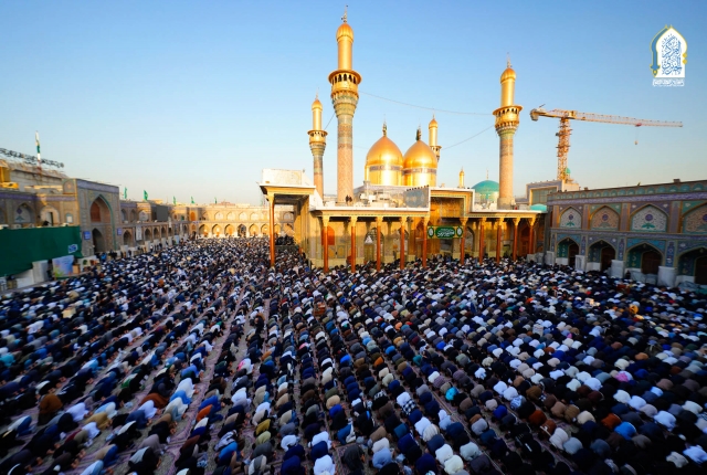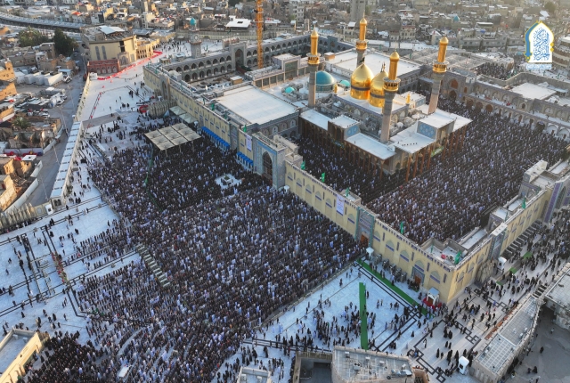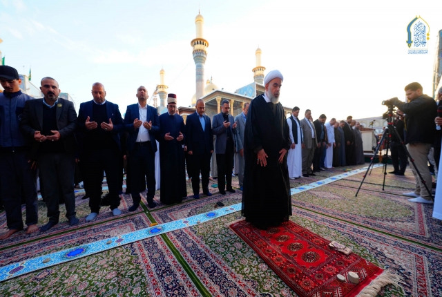 إذ تراصّت صفوف الموالين ليتضرعوا إلى بارئهم بطاعة وخشوع وإيمان وهم يؤدون مراسم صلاة عيد الفطر المبارك، وزيارة الإمامين الكاظمين الجوادين "عليهما السلام" بإشراف مكتب سماحة المرجع الديني الأعلى آية الله العظمى السيد علي الحسيني السيستاني "دام ظله الوارف" وبإمامة ممثل المرجعية الدينية في مدينة الكاظمية المقدسة سماحة الشيخ حُسين آل ياسين "دامت توفيقاته"، وبحضور الأمين العام للعتبة الكاظمية المقدسة، خادم الإمامين الكاظمين الجوادين الدكتور حيدر عبد الأمير مهدي، وأعضاء مجلس الإدارة الموقر.