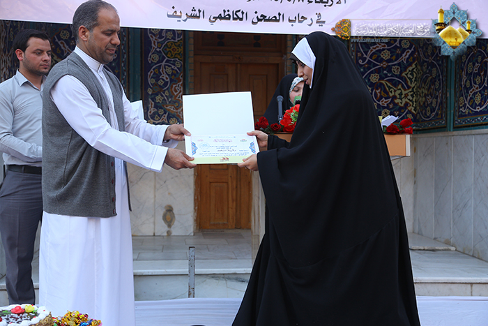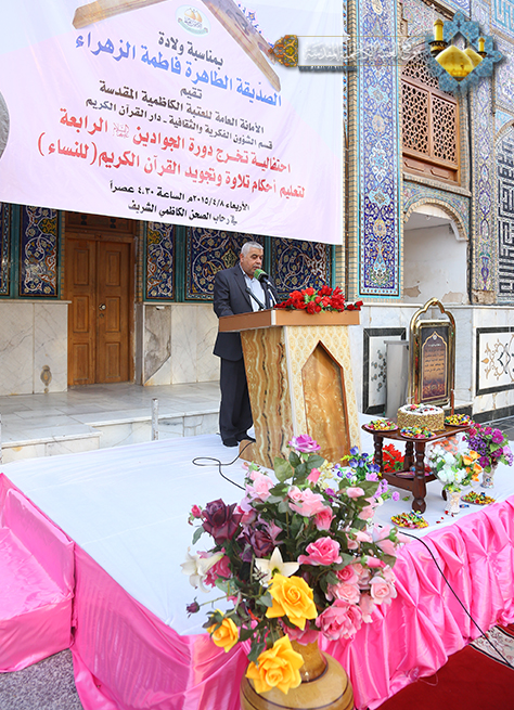 إيماناً منها بدعم ورعاية المسيرة القرآنية المباركة، أقامت الأمانة العامة للعتبة الكاظمية المقدسة/ قسم الشؤون الفكرية والثقافية/ دار القرآن الكريم تخريج كوكبة جديدة من دورة الجوادين "عليهما السلام" الرابعة لتعليم أحكام التلاوة وتجويد القرآن الكريم للنساء، في حفل أقيم في رحاب الصحن الكاظمي الشريف، والذي تزامن مع ذكرى ولادة الصديقة الطاهرة فاطمة الزهراء "عليها السلام"، بحضور عضو مجلس الإدارة سماحة الشيخ عماد الكاظمي ومسؤول دار القرآن الكريم وعدد من معلمات الدورة القرآنية. شهد الحفل تلاوة آيٍ من الذكر الحكيم عطر بها أجواء الصحن الكاظمي الشريف الحاج همام عدنان، و إلقاء كلمات عدّة بيّنت دور العتبة المقدسة ونهوضها بأعباء المسؤولية الملقاة على عاتقها، واهتمامها بالمشروع القرآني، ودعمها للمواهب والطاقات القرآنية، والإسهام في رفع المستوى الديني والعقائدي للفرد والمجتمع . كما استمع الحضور إلى تلاوات عدد من طالبات الدورة القرآنية، واختتامها بتوزيع الشهادات التقديرية والهدايا من بركات الإمامين الجوادين على المشاركات.