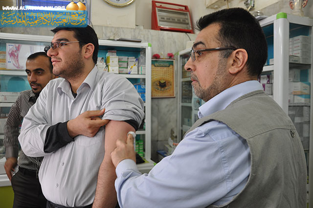 حرصا منها على سلامة منتسبيها من جميع الأمراض ، فقد باشرت الأمانة العامة للعتبة الكاظمية المقدسة من خلال قسم المتابعة والتنسيق (شعبة الدفاع المدني والإسعافات الأولية ) التابعة لها ، وبالتنسيق مع مركز الرعاية الصحية الأول في مدينة الكاظمية المقدسة بحملة لتلقيح خدمة الإمامين الجوادين (عليهما السلام ) بلقاح التهاب الكبد الفيروسي ، حيث بادر المركز المذكور مشكورا بإرسال فريق طبي مع كمية من اللقاح الخاص بهذا المرض والمباشرة بتلقيح المنتسبين بلقاح يقيهم من الإصابة بهذا المرض .