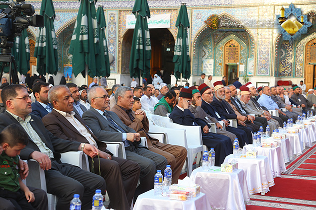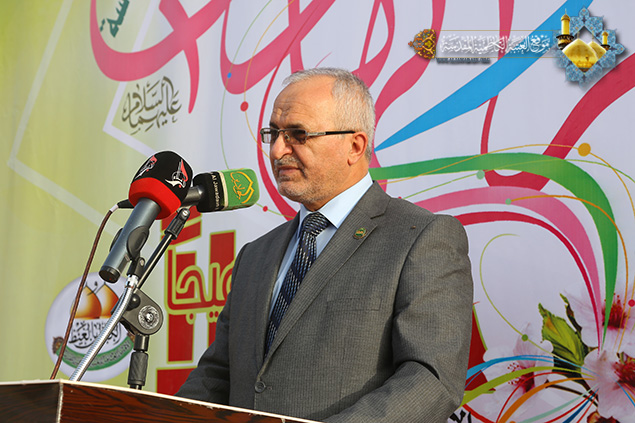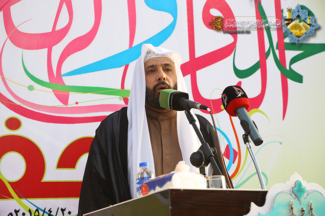 وأضاف قائلاً: لقد استلهم علماؤنا الأعلام (فهم ورثة الأنبياء) وعلى مر التأريخ الدروس والعبر من أئمة الهدى "عليهم السلام" واقتفوا خطاهم في التعامل مع متغيرات الأحداث وخطورتها بكل وعيٍ وحكمةٍ جاعلين مصلحة الأمة المسلمة وكرامتها فوق كل الاعتبارات , فعندما تستوجب المرحلة النهوض بأعباء الجهاد تجدهم أول المتصدين والحاثين يرادف ذلك التوجيه والنصح لأبناء الأمة ولمن يتحملون زمام المسؤولية. ولقد كانت المرجعية الرشيدة المتمثلة بمساحة السيد علي السيستاني "دام ظله الوارف" مثالاً رائعاً لريادة الشعب العراقي وهو يخوض مرحلة الصراع مع أعداء الله من التكفيريين والمؤازرين لهم على المستوى الإقليمي والدولي, واستطاع بما أوتي من الحكمة البالغة والرأي السديد أن يكون صمام الأمان للحفاظ على وحدة العراقيين أمام الخطر المشترك وان يتأهل وبجدارةٍ لأن يكون أباً باراً لجميع العراقيين.
