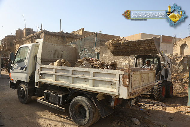 العتبة الكاظمية المقدسة تتعاون مع أمانة بغداد بأعمال إزالة الدور المستملكة
