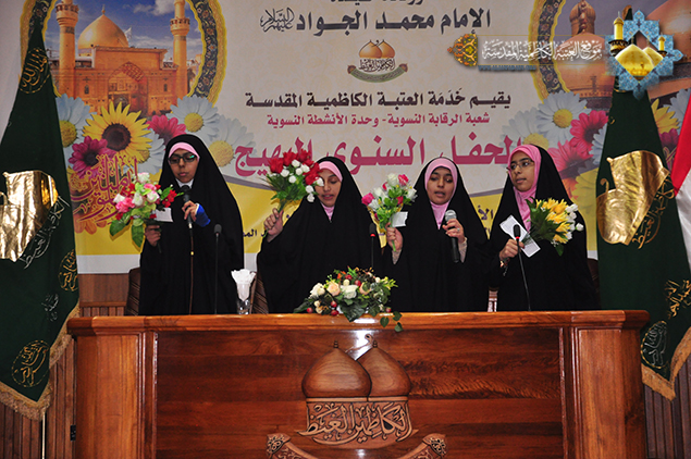 أقامت الأمانة العامة للعتبة الكاظمية المقدسة / شعبة الرقابة النسوية / وحدة الأنشطة النسوية حفلاً نسوياً بهيجاً بمناسبة ولادة أمير المؤمنين وحفيده الإمام محمد الجواد "عليهما السلام" في يوم الأربعاء 10رجب المرجب 1436هـ، على قاعة أسد الله الحمزة بن عبد المطلب، إذ استهل الحفل بآيٍ من الذكر الحكيم شنفت بها أسماع الحاضرات القارئة نورا صالح، ثم استمع الحضور الكريم إلى أنشودة (الفردوس) النشيد الخاص بالعتبة الكاظمية المقدسة، ثم جاء دور كلمة شعبة الرقابة النسوية التي ألقتها السيدة أم أسامة حيث تناولت شيئاً من التراث الثرّ للإمامين أمير المؤمنين وحفيده الجواد "عليهما السلام"، بعد ذلك ألقت السيدة أم فاضل مسؤولة شعبة الأنشطة النسوية كلمتها بهذه المناسبة المباركة، ثم صدحت أصوات طالبات وحافظات دورات القرآن الكريم في العتبة المقدسة بمجموعة من الأناشيد والقصائد الشعرية التي تترنم بمناقب وفضائل صاحبي الذكرى "عليهما السلام"، كما ألقت خادمة الإمامين الجوادين السيدة زينب حسين من قسم الشؤون الفكرية والثقافية قصيدة غراء للشاعر والأديب الأستاذ مهدي جناح الكاظمي تحت عنوان: نشيد الجواد (عليه السلام)، بعدها اعتلت المنصة مجموعة من طالبات مدرسة التكامل الأهلية فرع مدينة الكاظمية المقدسة ليلهجن بأنشودة مباركة تحمل عنوان (لا إله إلا الله)، كما تخلل الحفل المبارك عرض قرص مدمج من إنتاج تلفزيون الجوادين يعرض للحاضرات الكريمات قليلاً من كثير حكم ومواعظ أمير المؤمنين والإمام الجواد "عليهما السلام" كما تضمن الحفل طرح عدد من الأسئلة الدينية والثقافية المتنوعة على الحاضرات رُصدت لها جوائز من بركات الإمامين، وختام الحفل كان لفرقة الإنشاد الديني في العتبة المطهرة وأنشودة (لبيك يا جوادنا).