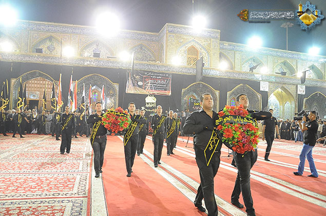 بعدها استمع المشاركون في مراسم العزاء لمقطع صوتي من قصيدة "جبريل ينعاه" للرادود الحسيني الحاج جليل الكربلائي، واختتمها الرادود كرار الكاظمي بالقصائد والمراثي العزائية .