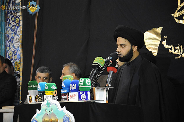 كلّ الإجلال والتقدير لأتباع أهل البيت الأطهار "عليهم السلام" وهم يبذلون الغالي والنفيس لإحياء ذكرى استشهاد مولانا الإمام موسى بن جعفر الكاظم "عليه السلام" جعله الله في ميزان حسناتهم، كما ندعو العلي القدير ان بنصر المجاهدين في الحشد الشعبي وقواتنا الأمنية وأن يرحم شهدائنا ويعجل بشفاء جرحى ويجعل هذا البلد أمناً ". وكانت هناك كلمة لديوان الوقف الشيعي ألقاها سماحة السيد علاء الموسوي تحدث فيها قائلاً: "أن هذه المناسبة الأليمة دعت الملايين من المؤمنين إلى التوجه لمدينة الكاظمية المقدسة لتجدد العهد والولاء لراهب آل محمد الإمام موسى الكاظم "عليه السلام" الذي ضرب أروع الأمثلة في كظم الغيظ، فأصبح علماً من أعلام الصبر في تاريخ الإسلام، وقدوة للصالحين، فنستذكر في هذه الأيام سيرته العطرة التي تفيض حباً وسلاماً وأخلاقاً وفضائل، ونسأل الله أن يتم هذه المناسبة بالخير والسلام على الجميع وأن يرد كيد الكائدين الإرهابيين إلى نحورهم. بعدها ارتقى المنصة سماحة السيد جعفر المشعشعي وألقى محاضرة دينية بهذه المناسبة جاء فيها: يوم جديد تسجل فيه ملحمة جديدة من الملاحم التي سطرها شعبنا المظلوم المجاهد الصابر ليعبر عن ولائه الصادق لأهل البيت "عليهم السلام" وهم يتحدون كلّ الأعمال الإرهابية لأجل إحياء المناسبة العظيمة وذكرى استشهاد قاضي الحاجات موسى بن جعفر "عليه السلام"، الذي برهن ظلامته من زاوية أخرى، ألا وهي انتصار الصبر على الأغلال في بغداد وانتصار السجين على السجان، كما انتصر الدم على السيف في ثورة جده الإمام الحسين "عليه السلام " في كربلاء. وأشار سماحته في حديثه إلى ضرورة وجود التناغم والانسجام بين التيارات السياسية والعقائدية والفكرية والانتماءات الدينية، وتفويت الفرصة على كلّ من يستهدف نسيج شعبنا الجريح، وأن تكون هذه الزيارات المليونية منطلقاً لوحدة الأمة. وتخللت المراسم إلقاء قصيدة رثائية بعنوان "شهيد السجون موسى بن جعفر" لشاعر أهل البيت الأستاذ مهدي جناح الكاظمي عنوان ومنها هذه الأبيات: لا السجنُ يحجبهُ ولا السجانُ نارُ الكليم ونورهُ صنوانُ من قبل إيجاد الوجود ولم يزل نوراً به يتوضأ القرآنُ