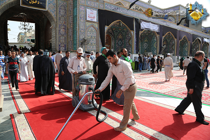 استنفر قسم النظافة التابع للعتبة الكاظمية المقدسة جميع منتسبيه من خدمة الإمامين الكاظمين"عليهما السلام" استعداداً لاستقبال الحشود المليونية الزاحفة نحو الصحن الكاظمي المقدس لإحياء ذكرى المصاب الجلل الذي ألمَّ بالأمة باستشهاد العبد الصالح الإمام موسى بن جعفر الكاظم "عليه السلام" وشملت تلك الاستعدادات و التحضيرات المبكرة العديد من المهام التي تسهم وبشكل كبير في تقديم أفضل الخدمات وأسباب الراحة للزائر الكريم، صرح بذلك نائب رئيس قسم النظافة الخادم هشام حاتم توفيق خلال لقاءٍ مع موقع العتبة الالكتروني وأضاف:(واصل خدمة الإمامين الجوادين "عليهما السلام" في قسم النظافة جهودهم الاستثنائية وعلى مدار اليوم مواصلين الليل بالنهار خدمةً للزائرين، حيث تم وبعون الله تعالى إكمال جميع المهام الموكلة للقسم في هذه المناسبة والتي شملت إكساء الارضية الداخلية والخارجية للصحن الكاظمي الشريف باكمله بالسجاد، بعد تنظيفها ورفع النفايات عنها، وتهيئة برادات المياه الصالحة للشرب للزائرين وفي أكثر من موقع داخل وخارج الصحن الشريف، ونصب المظلات المتحركة لظمان أكبر قدر من الراحة للزائرين، هذا فضلاً عن تنظيف مداخله الأربعة من جهة باب القبلة، وباب المراد، والشريف المرتضى، وشارع صاحب الزمان، كما تم تهيئة حمامات الرجال والنساء وإجراء عملية الصيانة والإدامة والتنظيف المتواصلة طوال أيام الزيارة المباركة.