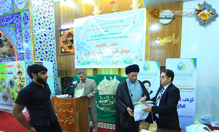 تخليداً للمواقف النبيلة والتضحيات الجسام التي قدمها شهداء العراق والمقدسات شهداء الحشد الشعبي الذين سقطوا مضرّجين بدماء الشهادة والعزّة والتضحية من أجل تراب الوطن الغالي في معاركهم ضدّ الإرهاب التكفيري، وفي خطوة مباركة من قبل الأمانة العتبة الكاظمية المقدسة تعبر عن عمق التواصل الوجداني والإنساني مع عوائل الذين خطّوا أسماءهم بأحرف من نور، وضحّوا بأنفسهم من أجل الدفاع عن حياض هذا البلد العزيز، أقيم في محافظة واسط مهرجان خاص لتكريم كوكبة من عوائل شهداء الحشد الشعبي المقدَّس، بالتعاون مع الأمانة العامة للعتبة الكاظمية المقدسة ومؤسسة العين للرعاية الاجتماعية (فرع واسط)، بحضور عضو مجلس إدارة العتبة الكاظمية المقدسة ورئيس لجنة الحشد الشعبي المهندس سعد محمد حسن ووكيل المرجعية الدينية في مدينة الكوت سماحة الشيخ سعد التميمي وعدد من الشخصيات الاجتماعية وذوي الشهداء.
