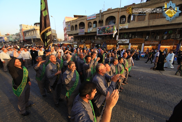 وشارك في تلك المجالس مجموعة من رواديد العتبة الكاظمية المقدسة بقصائدهم الرثائية, بحضور الجموع الغفيرة من الزائرين الكرام الذين توافدوا إلى الحرم الكاظمي الشريف لتقديم العزاء بهذه المناسبة الأليمة. وفي سياق متصل نظمت الأمانة العامة للعتبة الكاظمية المقدسة عصر يوم الأثنين 7 ذي الحجة 1436هـ الموافق 21/9/2015م، مسيرة عزائية انطلقت من حسينية آل الصدر في شارع باب المراد متجهة صوب المشهد الكاظمي الشريف, تقدمت المشاركين رايات الحزن والعزاء مرددين خلالها الهتافات والقصائد التي صدحت بها حناجرهم حباً وولاءً لإمامهم الباقر"عليه السلام".