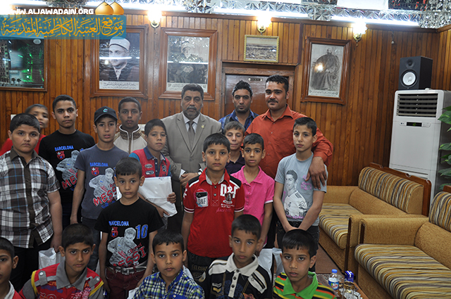 تشرفت مجموعة من طلبة مجمّع الإمام الجواد(ع) للأيتام الذي يتولى رعايته سماحة المرجع الديني آية الله الفقيه السيد حسين السيد اسماعيل الصدر(دام ظله) في مدينة الكاظمية المقدسة بزيارة الامامين الجوادين(ع), وبعد ادائهم مراسم الزيارة والدعاء عند المرقدين الطاهرين, توجهوا الى مقر ادارة العتبة حيث كان في استقبالهم السيد الأمين العام للعتبة الكاظمية المقدسة الحاج فاضل الانباري بكل حفاوة وترحيب وأعرب خلال اللقاء عن سعادته وسروره البالغين وحثهم على الاهتمام البالغ بالتعلم والاجتهاد بدروسهم, و تطوير قابلياتهم وطاقاتهم واستثمارها ورعايتها بالصورة الصحيحة لبناء عراقنا العزيز, باعتبارهم رجال المستقبل القادم الذي يتأمل به الجميع خيراً, وشدد على ضرورة الارتباط الحقيقي والتمسك بالأئمة الأطهار(ع), وفي ختام اللقاء قدمت للطلبة الزائرين الهدايا من بركات الامامين الجوادين(ع) .