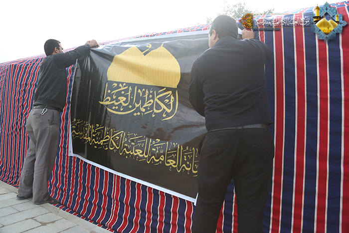 تشهد العتبة الكاظمية المقدسة توافد قوافل الزائرين الحاشدة من كلّ فج عميق على شكل مسيرات كبيرة، مؤكدة إيمانها وولاءها للمسيرة الحسينية الخالدة التي أثبتت للعالم بأن العطاء والتضحيات في سبيل الله والإنسانية تبقى خالدة ومستمرة لا تحول دونها الأزمان، لذا وجهت الأمانة العامة للعتبة الكاظمية المقدسة بنصب المخيمات للجموع الزائرة التي اتخذت من مرقدي الإمامين الجوادين "عليهما السلام " محطة انطلاق للمسير نحو كربلاء المقدسة. حيث شرعت الملاكات الفنية في الأقسام الهندسية بنصب مجموعة المخيمات لإيواء ومبيت الزائرين الكرام الوافدين من داخل العراق وخارجه حيث شملت صحن الإمام الباقر "عليه السلام" والطابق الأرضي له، ومسقفات الصحن الكاظمي الشريف من الجهة الشرقية والغربية ومخيمات أخرى في شارع أمير المؤمنين علي بن أبي طالب "عليه السلام" وشارع الإمام صاحب الزمان "عجل الله فرجه الشريف" فضلاً عن فتح دور الضيافة التابعة للعتبة المقدسة والتعاون والتنسيق مع الحسينيات والجوامع في مدينة الكاظمية المقدسةمع توفير وجبات الطعام لهم صباحاً وظهراً ومساءً، وتسعى الأمانة العامة للعتبة الكاظمية المقدسة إلى توفير سبل الراحة وخدمات الضيافة كافة للوافدين بعد تحملهم عناء الطريق لإحياء زيارة أربعينية الإمام الحسين "عليه السلام".