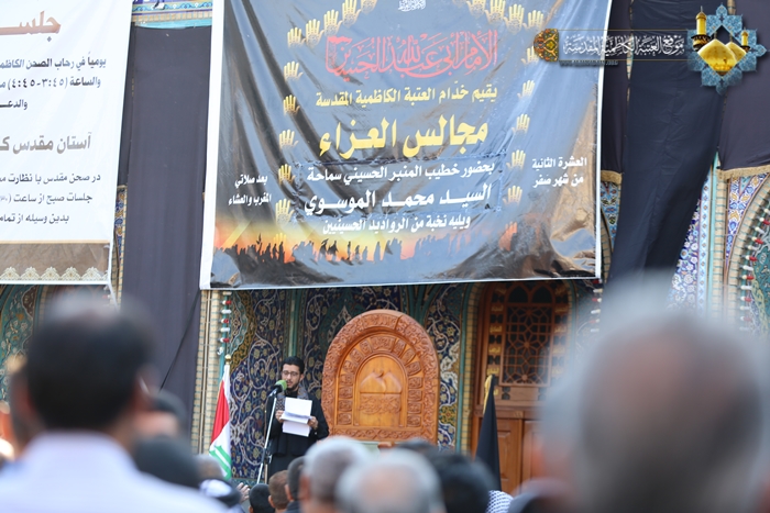 تجددت أحزان أهل البيت "عليهم السلام " في يوم الأربعين وعودة الركب الزينبي إلى كربلاء، فقد ارتبط ذلك اليوم بضمير العالم أجمع وهزّ النفوس وأدمع المُقل وترك بصمات مشرقة في صفحات التاريخ حين تحول الأسر إلى نصر . شهدت رحاب الصحن الكاظمي الشريف في العشرين من شهر صفر المظفر 1437هـ برنامجاً عزائياً خاصاً استمع المعزون فيه إلى القصة الكاملة لمسيرة الركب الزينبي وما جرى على عيالات آل بيت رسول الله "صلى الله عليه وآله" من سبي وضيم ومصائب عظيمة.