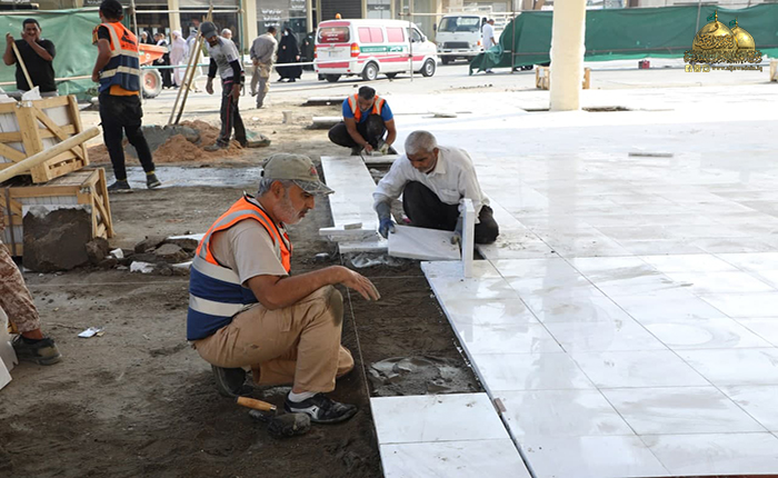 وعن هذه الجهود تحدّث لموقع العتبة الإلكتروني المشرف على أعمال المشروع المهندس محمد صفاء قائلاً: إن الأعمال تجري ضمن مراحل متقدّمة، وتسير بوتيرة متصاعدة بعد الانتهاء من مشاريع البنى التحتية التي تخدم المنطقة بالخدمات الكهربائية والميكانيكية، وصب الأرضيات، ونصب المظلات ومناهل المياه (RO) الصالحة للشرب، شرعت الملاكات الفنية بأعمال إكساء أرضية صحن باب المراد بالمرمر وفق تصاميم معمارية، وجداول زمنية وخطة عمل دؤوبة تضمن عدم التأثير على حركة زائري الإمامين الكاظمين "عليهما السلام" بالعمل الجاري.