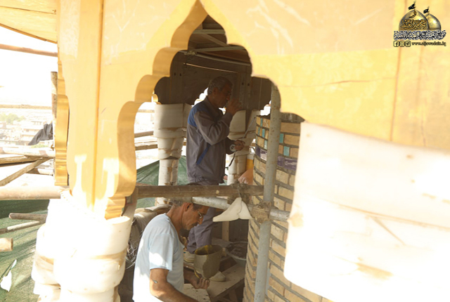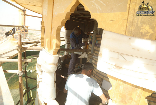 وعن طبيعة تلك الأعمال تحدّث لموقع العتبة الكاظمية المقدسة الإلكتروني مدير وحدة الإشراف والتنفيذ المهندس مهدي مجيد حميد قائلاً: بعد انتهاء من مراحل الصيانة الإنشائية والمعالجة في بدن المنارة، تواصل الملاكات الفنية عملية التذهيب والإكساء وتركيب البلاطات بقياسات وأشكال مختلفة بدقة متناهية، ووفق التصاميم المصادق عليها، واعتماد أسلوب الطلاء الكهربائي مع مراعاة الحفاظ على العناصر الأثرية الموجودة في واجهة المنارة، حيث وصلت نسبة الإنجاز ما يقارب أكثر من (80%).