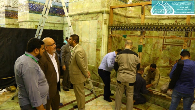 الصحن الكاظمي الشريف يشهد أعمال نصب وتركيب شبّاكي مرقدي الشيخ المفيد والخواجة الطوسي "أعلى الله مقامهما الشريف"