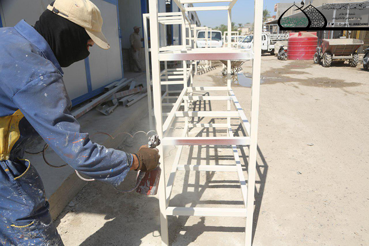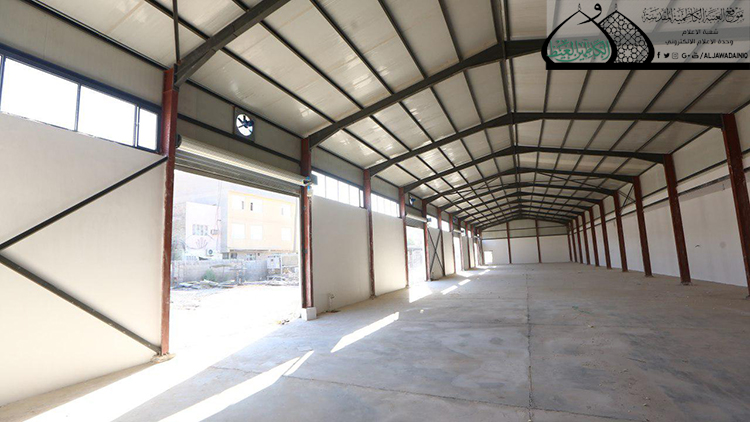وأضاف: تم الإنتهاء من المرحلة الأولى لمشروع المخازن بنسبة (100%) بمساحة تقدّر (900م2)، بطابقين، يشتمل على قاعة كبيرة تستوعب أنواع متعددة من المخزونات، أما الطابق الثاني وهو ما تشهده المرحلة الثانية للمشروع من تقطيع للفضاءات بأعمدة ومجسرات وسقوف حديدية مخصص لتخزين الفرش والسجاد بأنواعه، وفق أحدث وسائل الخزن الحديثة، حيث سيجهز بمنظومة إنارة متكاملة، ومنظومة للإنذار والحماية من الحريق، فضلاً عن نظام التأريض والتهوية.