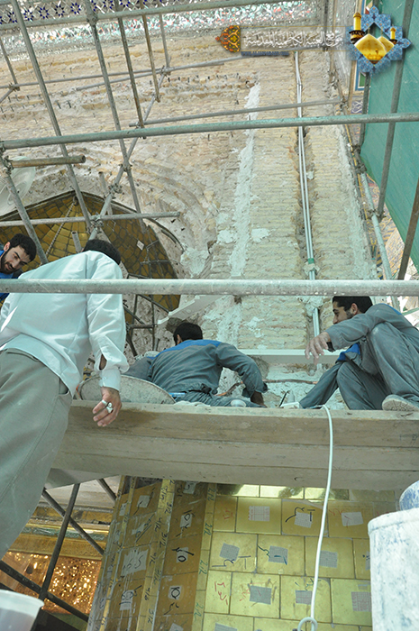 ​ إعادة إكساء الواجهة الخارجية لطارمة باب المراد بالبلاطات الذهبية مشروع جديد يضاف إلى سجل المشاريع العمرانية التي تشهدها العتبة الكاظمية المقدسة, بعد ما تعرضت البلاطات الذهبية القديمة لتقادم الزمن وعهود الإهمال مما كانت سبباً لتلف العديد منها واسودادها وتساقطها, لذا عزمت الأمانة العامة للعتبة الكاظمية المقدسة من خلال ملاكاتها الهندسية على انجاز هذا المشروع الذي سيضفي لمسات جمالية جديدة وبنقوش إسلامية متناسقة وحديثة تتلائم مع رونق وبهاء هذا الصرح الإسلامي الكبير. وعن مراحل هذا المشروع حدثتنا رئيس اللجنة المشرفة المهندسة (نادية فؤاد الأعسم) قائلةً: حقق مشروع أعمال تركيب البلاطات الذهبية الجديدة نسبة بلغت40% من الإنجاز, بعد مروره بمراحل عدة ابتداءً من إعداد التصاميم ورفع البلاطات القديمة من الطارمة, والقيام بأعمال الصيانة الأولية والمعالجة الإنشائية وأعمال التأسيسات الكهربائية الجديدة التي تسبق تنصيب البلاطات وواصلت حديثها حول تصنيع البلاطات قائلةً: تم تصنيع البلاطات الذهبية من مادة النحاس وطلائها بالذهب عيار (24) بقياسات وأشكال مختلفة حسب التصاميم الهندسية المصادق عليها, علماً ان البلاطات المصنعة تخضع لفحوصات جهاز التقييس والسيطرة النوعية. وتابعت حديثها عن مراحل تقطيع البلاطة وعملية تنظيفها وتنعيمها ودرجة اللمعان المطلوبة وصولاً إلى طريقة الطلاء الإلكتروني الحديث المتبع الآن في العالم أجمع تنجز في معمل طلاء الذهب في العتبة الكاظمية المقدسة, وذكرت إنه سيتم انجاز هذا المشروع المبارك خلال أربعة أشهر إن شاء الله تعالى.