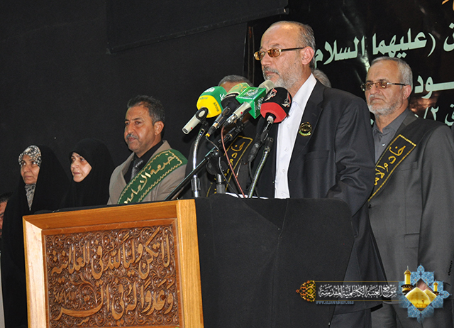 بعدها اعتلى المنصة عضو مجلس إدارة العتبة سماحة الشيخ(عماد الكاظمي) وألقى كلمة بهذه المناسبة وجاء فيها:( الحمد لله رب العالمين والصلاة على أشرف المرسلين والسلام على الهداة المعصومين... السلام عليك يا أبا صالح فأنت المعزى بمصاب أبائك، وها نقف اليوم أمام أعتاب هذه العتبة المطهرة لأمثل أخوتي خدمة العتبة الكاظمية المقدسة، ونشارك في هذا المحفل الحزين ونحن نستبدل تلك الرايات الخضراء بالرايات السوداء ورايات الحزن التي رفعتها مدينة الكاظمية المقدسة لتُذَكِّر أخواتها في المدن الإسلامية بهذا المصاب الجلل). ثم ألقى الشاعر الأستاذ (رياض عبد الغني) قصيدة مجدت هذه الذكرى العظيمة ومنها هذه الأبيات :