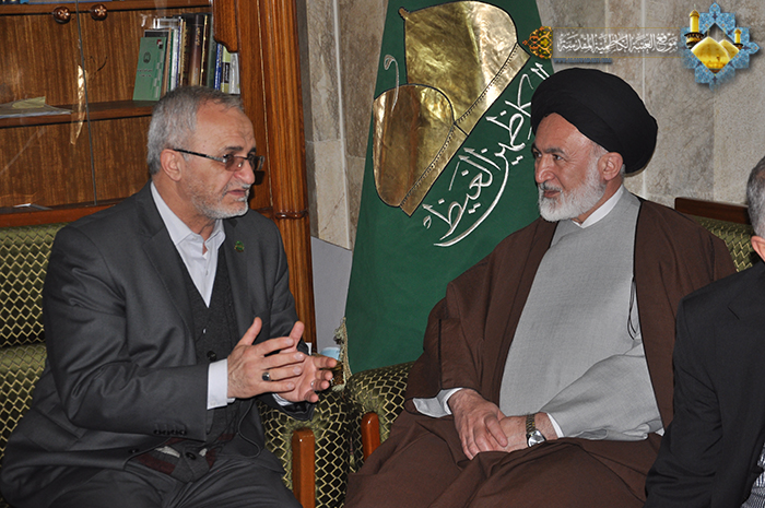تشرف بزيارة الإمامين الجوادين(عليهما السلام) وزير السياحة الايراني د (سعيد أوحدي) ورئيس هيئة الحج والعمرة الايراني سماحة السيد (قاضي عسكر) برفقة الدكتور(لواء سميسم) وزير السياحة والآثارالعراقي, وبعد أدائهم مراسم الزيارة والدعاء عند ضريحي الإمامين الهمامين موسى بن جعفر ومحمد الجواد (عليهما السلام), حل الوفد ضيفاً كريماً في مقر الأمانة العامة للعتبة الكاظمية المقدسة, واستقبلوا من قبل الأمين العام للعتبة الكاظمية المقدسة أ.د (جمال الدباغ) وعدد من أعضاء مجلس الإدارة بكل حفاوة وترحيب وأعرب الأمين العام عن سعادته وسروره البالغين بهذا اللقاء, كما عبر الوفد الزائر عن شكره وامتنانه لحسن الضيافة والاستقبال داعياً بالتوفيق والسداد لجميع المسؤولين والقائمين على خدمة العتبة المطهرة كما قدمت للوفد الضيف الهدايا من بركات الإمامين الجوادين(عليهما السلام).