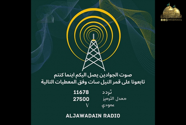 تيمناً مع ذكرى ولادة صاحب الشرف، وحجة المعبود وكلمة المحمود الإمام المهدي المنتظر "عجل الله فرجه الشريف"، وبدعم ومتابعة من قبل خادم الإمامين الكاظمين الجوادين "عليهما السلام"، الأمين العام للعتبة الكاظمية المقدسة الدكتور حيدر حسن الشمّري، وبإشراف عضو مجلس إدارة العتبة المقدسة المهندس جلال علي محمد، حرصت ملاكات إذاعة الجوادين التابعة لشعبة الإعلام في العتبة المقدسة على تطوير وتحديث منظومة خدماتها المقدّمة للمستمعين، وتوسيع نطاق بث موجتها لتمتد إلى كل أنحاء العالم عبر قمر النايل سات، بعد النجاحات التي حققتها على مدى أكثر أربعة عشر عاماً من العطاء في إيصال رسالتها الإيمانية الهادفة، والإسهام في بناء الإنسان والمجتمع وفق أسس موضوعية تحاكي مختلف المستويات الفكرية، ومعالجة المشاكل الاجتماعية، وتعزيز القيّم والمبادئ الإنسانية التي أكدها نهج الرسول الأكرم وأهل بيته الأطهار عموماً، والإمامين الكاظمين الجوادين "عليهم السلام" خصوصاً.