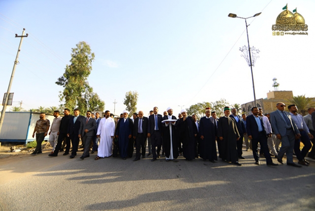 ابتهاجاً بيوم التتويج الإلهي لوصي رسول الله "صلى الله عليه وآله وسلّم" أمير المؤمنين وقائد الغرّ المحجلين الإمام علي بن أبي طالب "عليه السلام" في غدير خم ذلك اليوم المشهود الذي سطع فيه نور الإمامة، وأصبح عنواناً بارزاً لكلّ القيم والمعاني السامية النبيلة، وحمل بين طياته مسؤولية الرسالة المحمدية، شارك وفد الأمانة العامة للعتبة الكاظمية المقدسة، في الحفل البهيج الذي أقامته الأمانة العامة للعتبة العلوية المقدسة، في محافظة بابل/ قضاء الهاشمية بحضور ممثلي العتبات المقدسة وعدد من الشخصيات الدينية والاجتماعية وجمع من أبناء مدينة الحلة وأقضيتها الكرام.