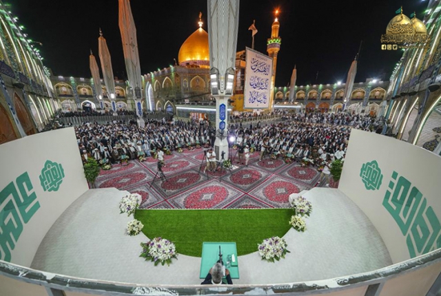 وشهد الحفل إلقاء كلمات عدّة أشارت إلى الجانب التاريخي والعقائدي المشرق للغدير الأغر، وأفاضت بفضائل أمير المؤمنين علي بن أبي طالب "عليه السلام" ومناقبه المباركة، في الوقت ذاته كانت هناك كلمة لوكيل المرجعية الدينية العُليا سماحة الشيخ حُسين آل ياسين "دامت توفيقاته" استذكر خلالها دور فتوى المرجعية الدينية العُليا في الدفاع الكفائي في حفظ الأرواح والممتلكات، وتضحيات أبناء المرجعية الدينية الذين لبوا نداء الجهاد من خلال خطبة النصر التي ألقاها ممثل المرجعية الدينية العليا في الصحن الحسيني المطهر، واختتم الحفل بمشاركات شعرية وقراءة القصائد الولائية بهذه المناسبة المباركة.