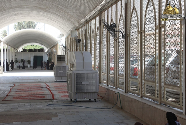 انسجاماً مع تزايد حشود الوافدين لموسم الأربعين هذا العام، وتنفيذاً لتوجيهات الأمين العام للعتبة الكاظمية المقدسة، خادم الإمامين الكاظمين الجوادين الدكتور حيدر حسن الشمري، قامت الملاكات الخدمية والفنية في قسم الشؤون الهندسية في العتبة الكاظمية المقدسة بتأهيل وتنظيم صحن الإمام علي "عليه السلام"، وصحن الإمام صاحب الزمان "عجل الله فرجه الشريف" لتأمين مساحات عبادية وخدمية جديدة ذات طاقات استيعابية عالية، فضلاً عن تغليف الفضاءات بقماش الساران من أجل توفير أجواء ملائمة لراحة الزائرين خلال فترة النهار، وتهيئة المنشآت الصحية، ونصب المراوح والمبردات، ووسائل التهوية والمستلزمات الخدمية كافة خصوصا مع ارتفاع درجات الحرارة، لتأمين أماكن إيواء واستراحة الزائرين والوافدين من داخل العراق وخارجه.