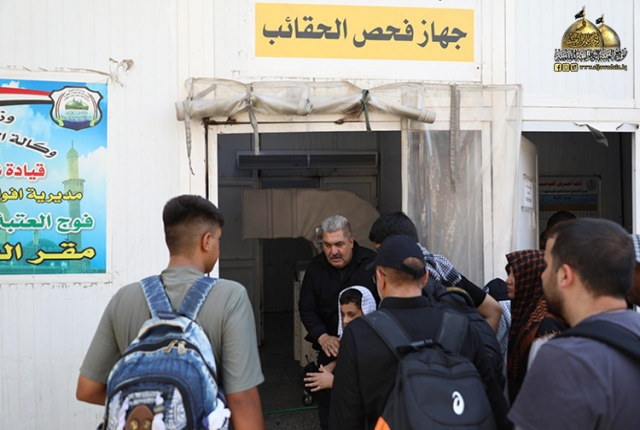 إذ شهد هذا الموسم تنظيم عالي لمنافذ وممرات الدخول والمغادرة وتقليل زخم الانتظار في الأبواب الرئيسة والحرص على منع التدافع بين الزائرين، والقيام ايضاً ببعض إجراءات التفتيش وفحص الحقائب بأحدث أجهزة السونار للعجلات الحقائب والأفراد ومفارز الـK9 لفحص العجلات والمركبات.
