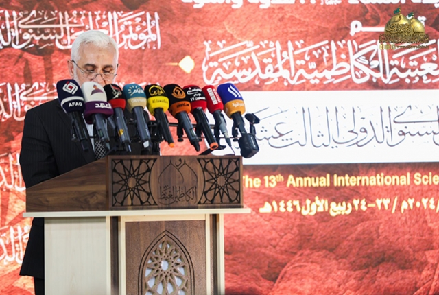 بدأت وقائعه بتلاوة مباركة من كتاب الله العزيز شنّف بها أسماع الحاضرين قارئ العتبة المقدسة السيد قاسم الزاملي، بعدها قراءة سورة الفاتحة المباركة أهدي ثوابها إلى أرواح الشهداء الأبرار، تلاها كلمة الأمانة العامة للعتبة الكاظمية المقدسة والتي ألقاها أمينها الدكتور حيدر الشمّري قائلاً: (من دواعي سرورنا أن نلتقيكم اليوم في هذه الرحاب الطاهرة وفي هذا اليوم المبارك لافتتاح فعاليات المؤتمر العلمي الدولي السنوي الثالث عشر ولأن عليا وفاطمة عليهما السلام وساطة فيض بين الحق والخلق.. كان مؤتمرنا تحت شعار (سيد الأوصياء وسيدة النساء عليهما السلام أسوة وقدوة) فهذا الشعار ألهَمَ الكثير من الباحثين والمهتمين بالشأن الإنساني والبحث العلمي على الصعيد الاجتماعي والتربوي والعقائدي والأخلاقي ليدلو بدلوهم وليبدعوا بأقلامهم بدراسات وآراء معرفية تسهم في إغناء المكتبة الإسلامية ونشر ثقافة وفكر أهل البيت "عليهم السلام" والتي تصقل شخصية الإنسان وترتقي بالمجتمع نحو مدارج الكمال.. بعد الاقتداء بأمير المؤمنين الإمام علي والسيدة فاطمة الزهراء "عليهما السلام" لما عرف عنهما بمكارم الأخلاق والتربية الصالحة والتزامهما بأخلاق القرآن الكريم وسنة رسول الله محمد "صلى الله عليه وآله وسلم" مما يشجع على استلهام العبر والدروس من منهاج حياتهما "عليهما السلام".