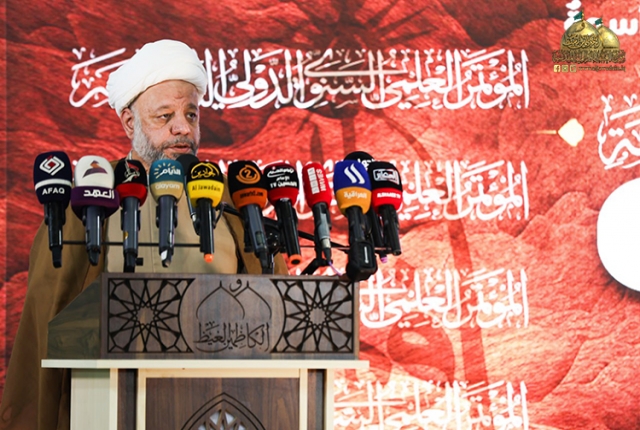 وأضاف: إنَّ بناتنا وأبناءنا بل جميع شرائح المجتمع في هذه المرحلة الخطيرة يواجهون تيارات جارفة تحاول أنْ تحرفهم عن جادة الحق وتُبْعِدَهم عن مبادئ الإسلام، بحجة ممارسة حريتهم الشخصية.. فتارة بالتقليد الأعمى للغرب وتارة بالإعلام الناعم وتارة بالتشجيع على التخلي عن مبادئنا وتقاليدنا ولن يتوقفوا عن غزوهم الفكري.. وطالما حذرت المرجعية الدينية المباركة متمثلة بسماحة آية العظمى السيد علي الحسيني السيستاني "دام ظله الوارف" في مناسبات عدة من الثقافات الهجينة والمستوردة لإسقاط المجتمعات وتفكيكها، محاولةً كسر عقيدة الأمة والتخلي عن مكارم أخلاقها، فلا يمكن الحفاظ على الأمة إلا بالعودة مجددا إلى كتاب الله وعترة النبي "صلى الله عليه وآله وسلم" والتمسك بالثقلين.